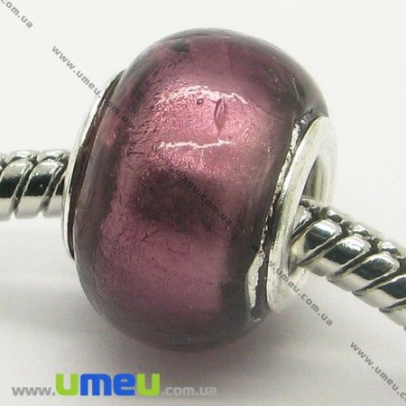 [Архів] Намистина PANDORA Lampwork, 14х10 мм, Фіолетова, Срібло (BUS-004565) / 1 шт