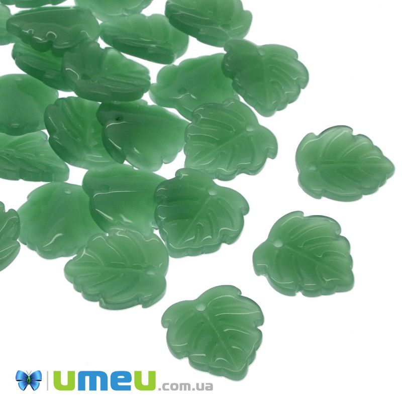 Намистина скляна, 15х14 мм, Листок, Зелена (BUS-046185) /