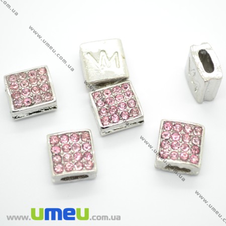 [Архів] Намистина Шамбала квадратна (під ремінець), 10х10 мм, Метал, Срібло, Рожева (BUS-004669) / 1 шт