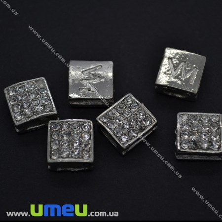 [Архів] Намистина Шамбала квадратна (під ремінець), 10х10 мм, Метал, Срібло, Біла (BUS-004672) / 1 шт