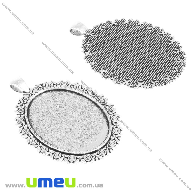 Основа овальна, 60х42 мм, 40х30 мм, Античне срібло (OSN-004722) / 1 шт
