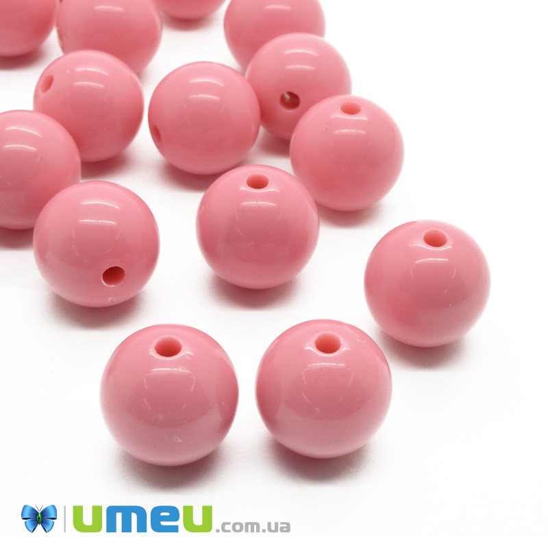 Намистина пластикова Кругла, 16 мм, Рожева (BUS-047323) / 1 шт