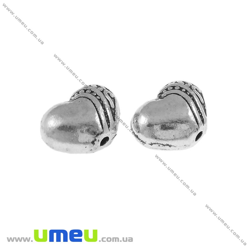 Намистина мет. Серце, 9х7х5 мм, Античне срібло (BUS-004826) / 1 шт