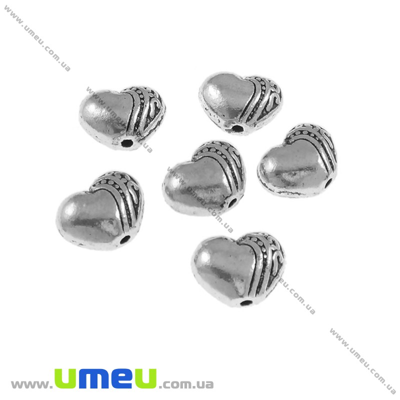 Намистина мет. Серце, 9х7х5 мм, Античне срібло (BUS-004826) / 1 шт