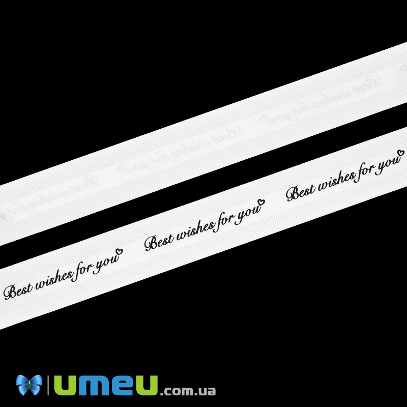 Репсова стрічка Best wishes for you, 25 мм, Біла (LEN-048580) / 1 м