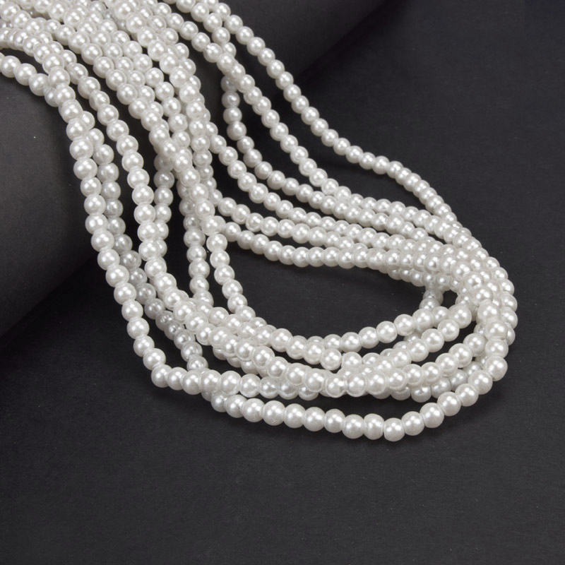Намистини скляні Перли, 4 мм, Білі (молочні), Круглі (BUS-048798) / 1 низка