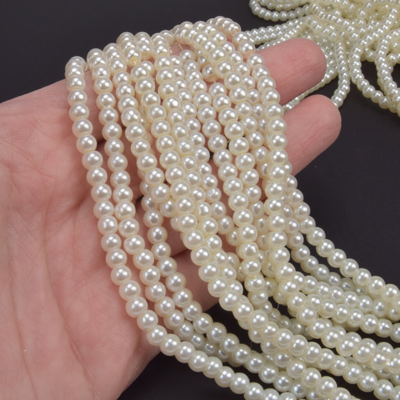 Намистини скляні Перли, 4 мм, Кремові, Круглі (BUS-048799) / 1 низка