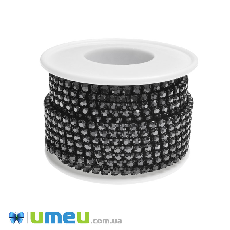 Стразовий ланцюг SS12 (2,8 мм), Чорний, Стрази скляні чорні (ZEP-049290) / 1 м