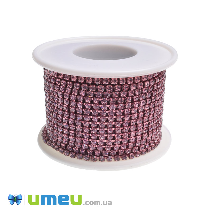 Стразовий ланцюг SS8,5 (2,6 мм), Бузковий, Стрази скляні бузкові (ZEP-049297) / 1 м