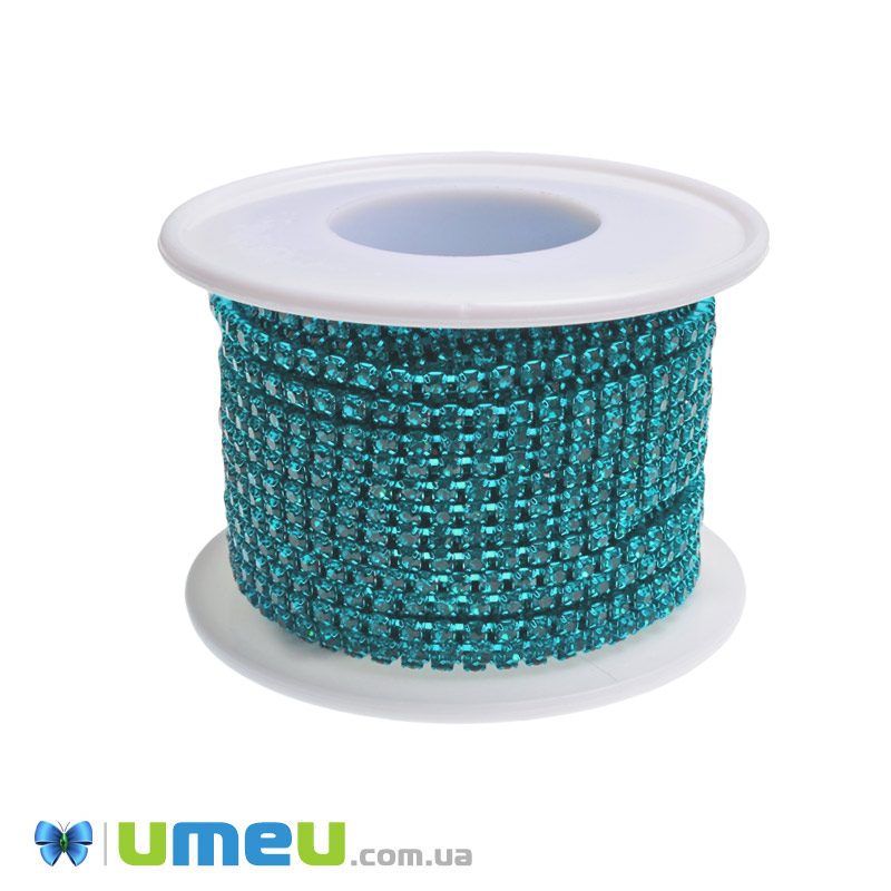Стразовий ланцюг SS8,5 (2,6 мм), Бірюзовий, Стрази скляні бірюзові (ZEP-049299) / 1 м