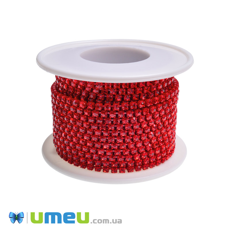 Стразовий ланцюг SS8,5 (2,6 мм), Червоний, Стрази скляні червоні (ZEP-049301) / 1 м