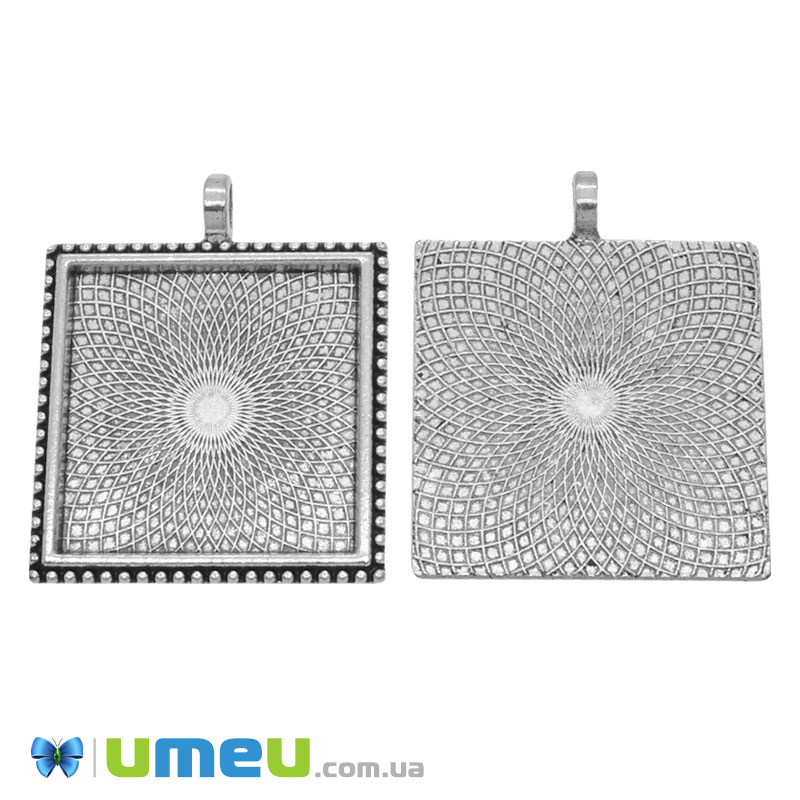 Основа квадратна, 37х31 мм, 25х25 мм, Античне срібло (OSN-049465) / 1 шт