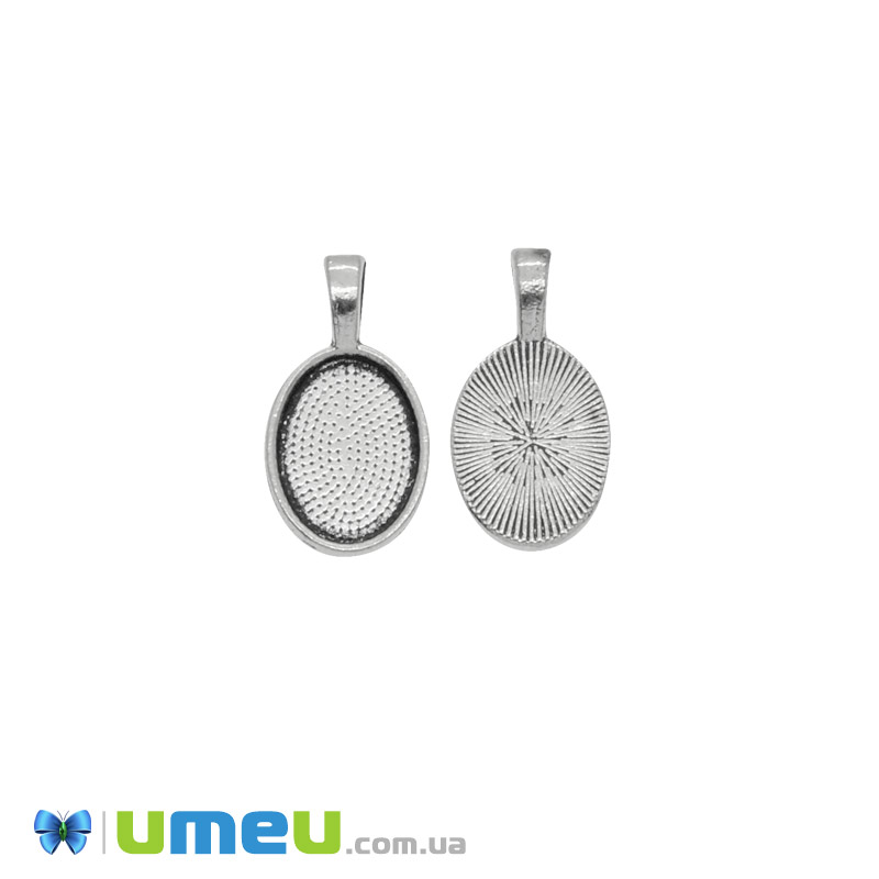Основа овальна, 23х12 мм, 14х10 мм, Античне срібло (OSN-049467) / 1 шт
