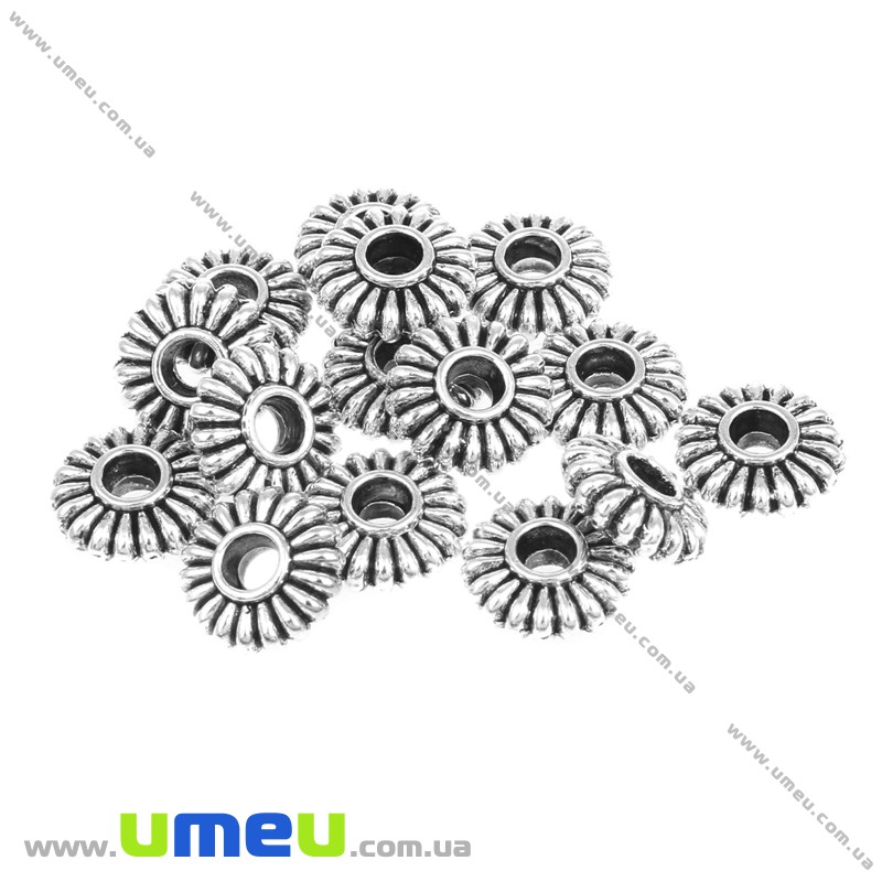 [Архів] Намистина-розділювач мет., 9х4 мм, Античне срібло (BUS-004962) / 1 шт