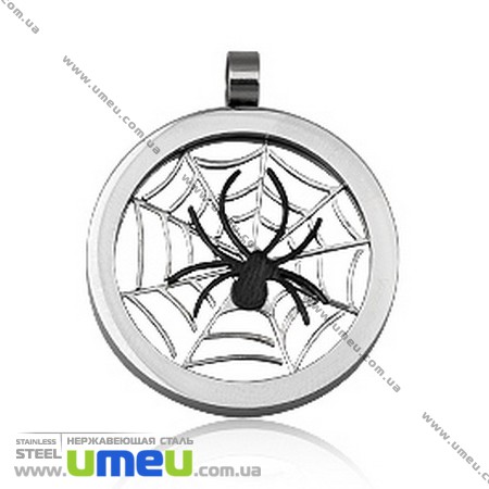 [Архів] Підвіска з ювелірної нержавіючої сталі Павук, Срібло, 31х31 мм (POD-004988) / 1 шт