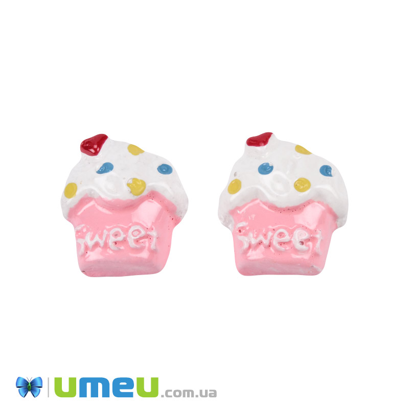 Кабошон з полімерної глини, Тістечко, 15х14 мм, Рожевий (DIF-050815) / 1 шт