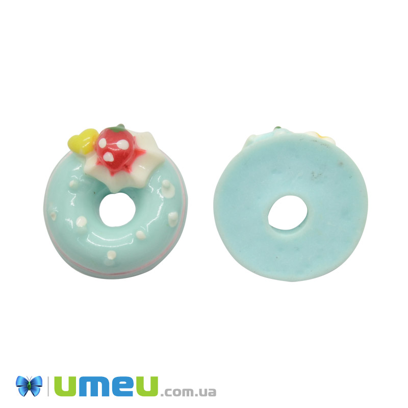 Кабошон із полімерної глини, Пончик, 18 мм, Бірюзовий (DIF-050822) /