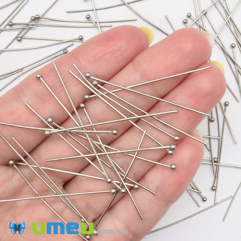 [Архів] Гвоздики з кулькою з нержавіючої сталі, 40 мм, Темне срібло (STL-050872) / 1 шт