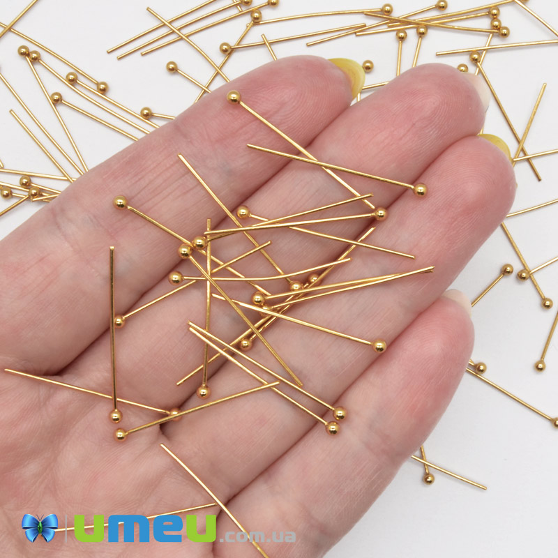 [Архів] Гвоздики з кулькою з нержавіючої сталі, 25 мм, Золото (STL-050874) / 1 шт