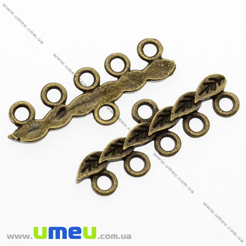 [Архів] Конектор металевий на 5 отворів Листочки, 27х10 мм, Антична бронза (KON-005137) / 1 шт