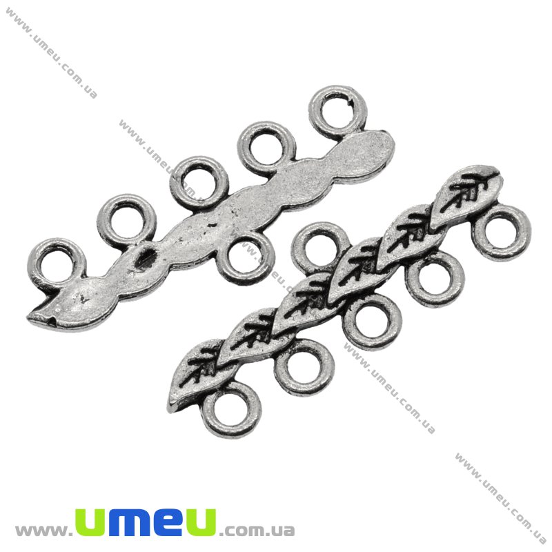 [Архів] Конектор металевий на 5 отворів Листочки, 27х10 мм, Античне срібло (KON-005139) / 1 шт