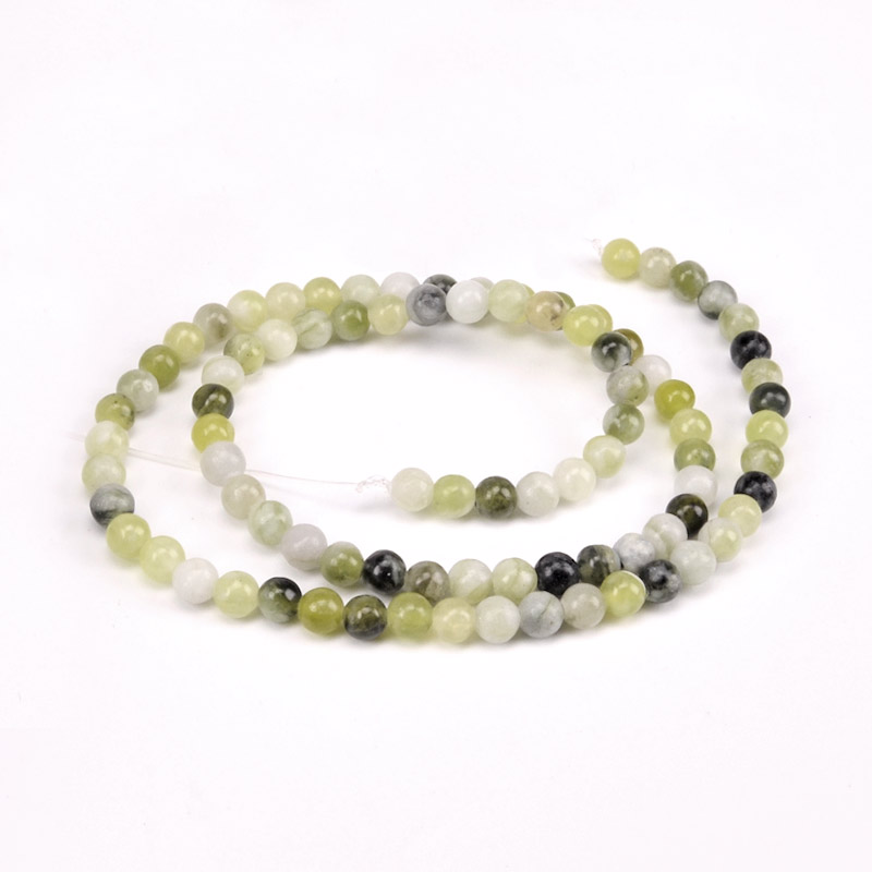 Намистини Нефрит зелений, Натур. камінь, 4,5 мм, Круглі (BUS-051796) / 1 низка