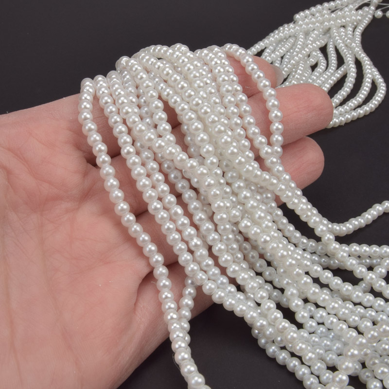 Намистини скляні Перли, 3 мм, Білі, Круглі (BUS-052035) / 1 низка