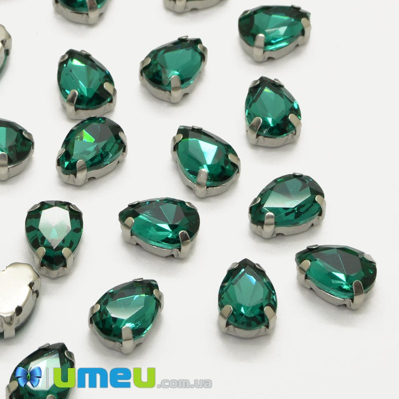 Шатон крапля 14х10 мм, Темне срібло, Смарагдовий (KAB-052608) / 1 шт
