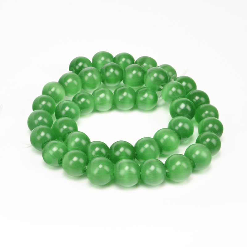Намистини Котяче око, Синт. камінь, 10 мм, Зелені, Круглі (BUS-054253) / 1 низка