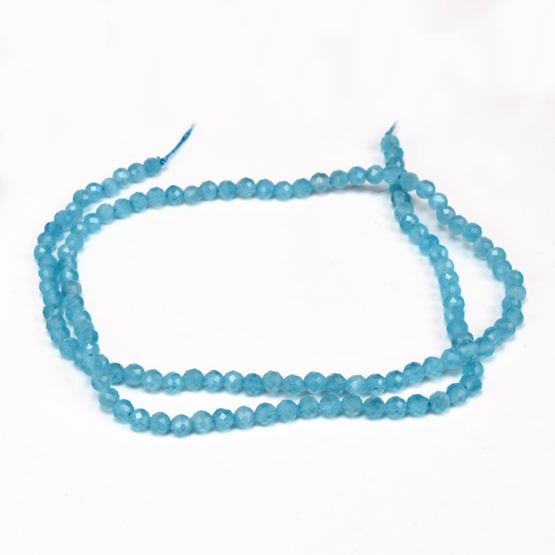 Намистини Котяче око, Синт. камінь, 3 мм, Бірюзові, Круглі грановані (BUS-054296) / 1 низка
