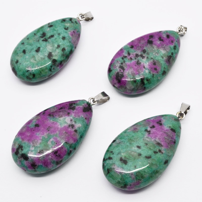 Підвіска Крапля, Натур. камінь Рубін у цоїзіті, 44х24х12 мм (POD-054370) / 1 шт