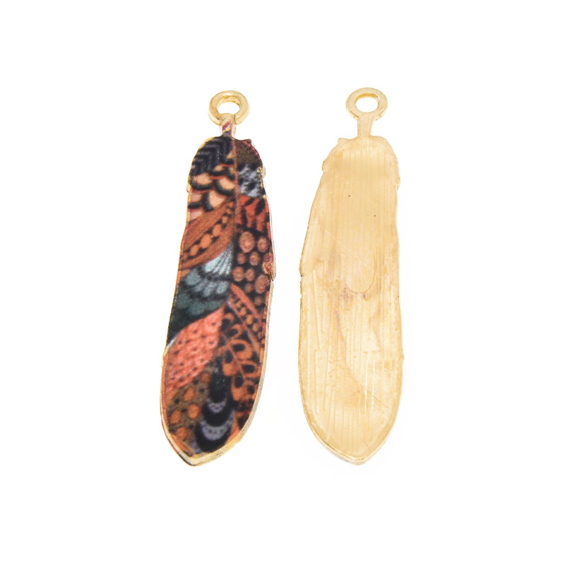 Підвіска метал. Перо червоне, Стійке покриття, 38х9 мм, Золото (POD-054747) /