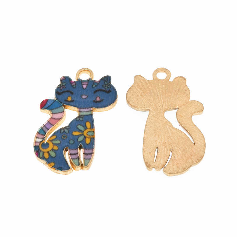 Підвіска метал. Кішка синя, 26х17 мм, Золото (POD-054766) /