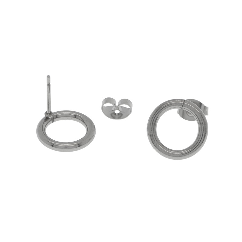 Пусети з нерж. сталі з заглушками, Круглі, 13х12 мм, Темне срібло (STL-055291) / 1 уп (2 шт)