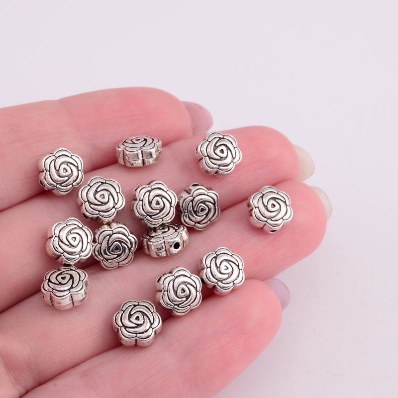 Намистини мет. Квіточки, 7,5 х4 мм, Античне срібло (BUS-055358) / 1 уп (10 шт)