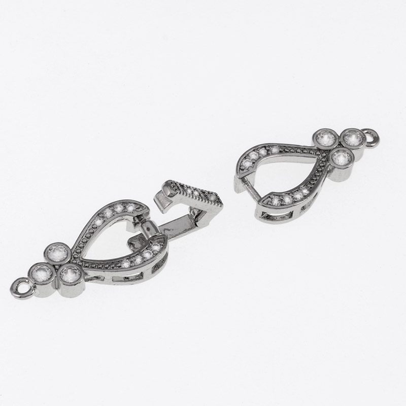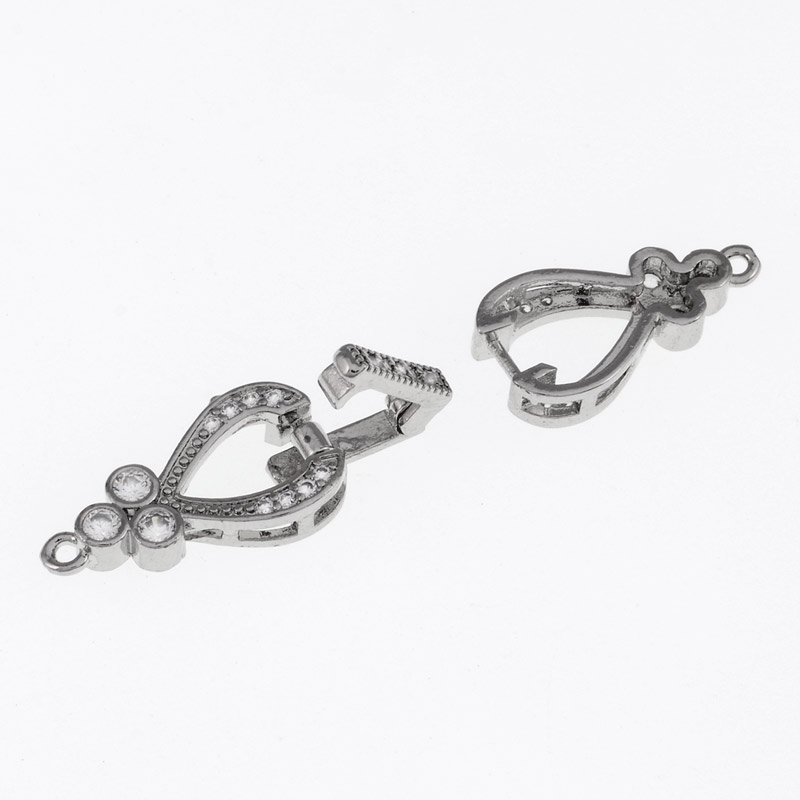 Застібка, 42х10 мм, Латунь із покриттям Родій, Куб. цирконій (ZAM-055434) / 1 шт