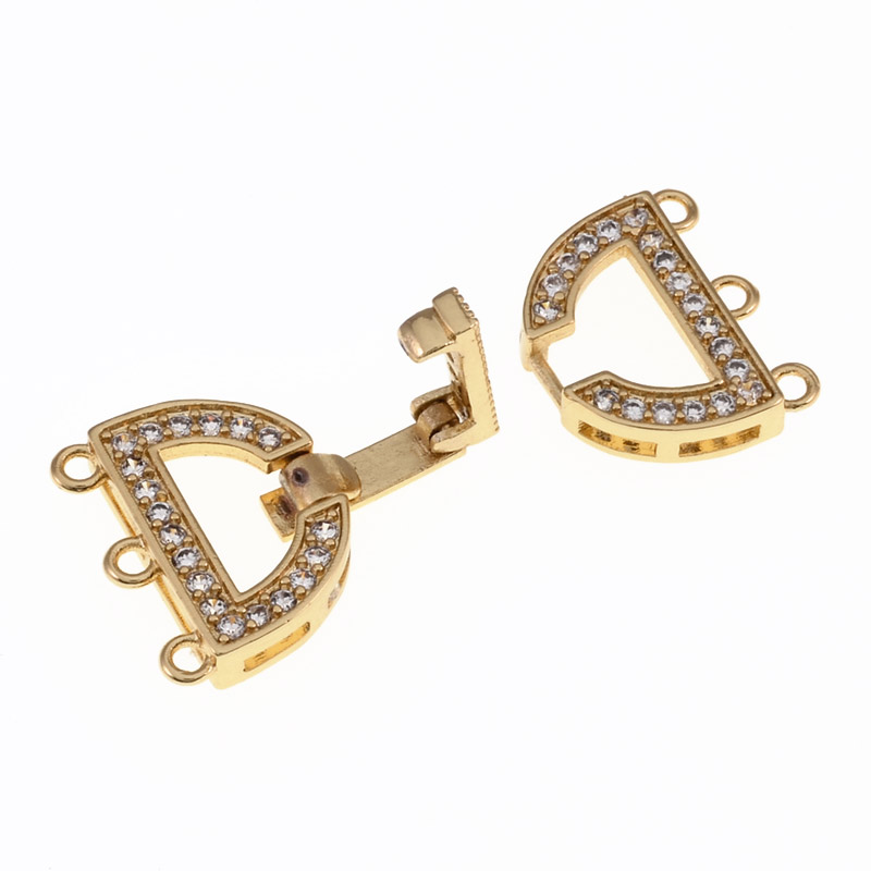 Застібка, 26х15 мм, Латунь із покриттям 18 kt, Куб. цирконій (ZAM-055442) / 1 шт