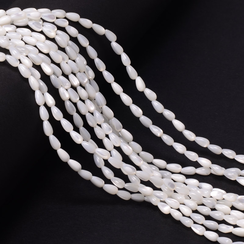 Намистини Перламутр білий, Натур. камінь, 7х4 мм, Крапля (BUS-056122) / 1 низка