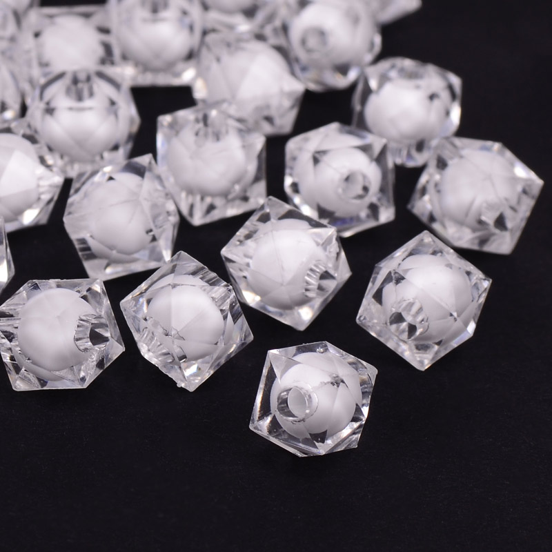 Намистини акрилові, Куб гранований, 12х11 мм, Білі (BUS-056154) / 1 уп (20 шт)