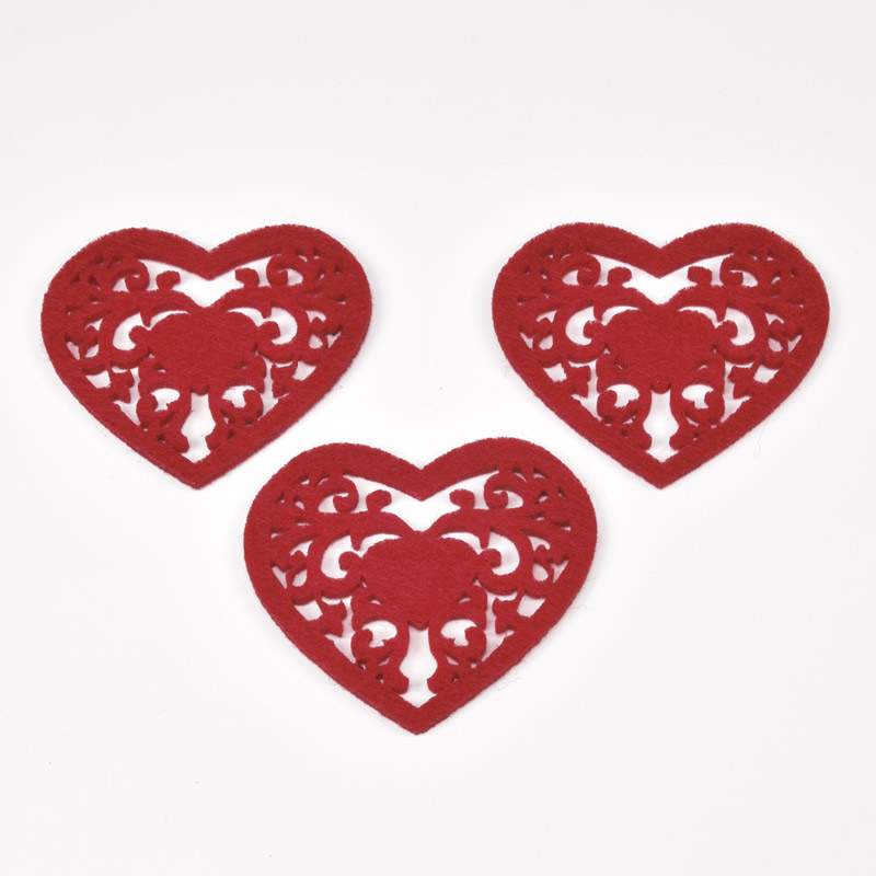 Декоративний виріб з фетру Мереживне серце, 5х5 см, Червоне (FLT-057011) / 1 уп (3 шт)
