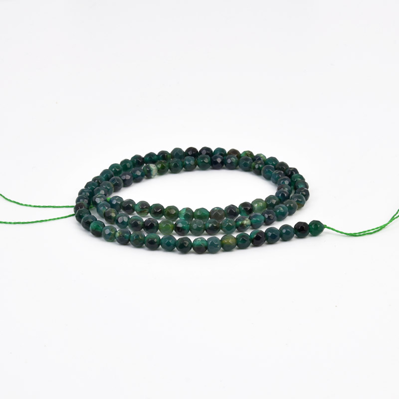 Намистини Агат зелений, Натур. камінь, 4 мм, Круглі грановані (BUS-058186) / 1 низка