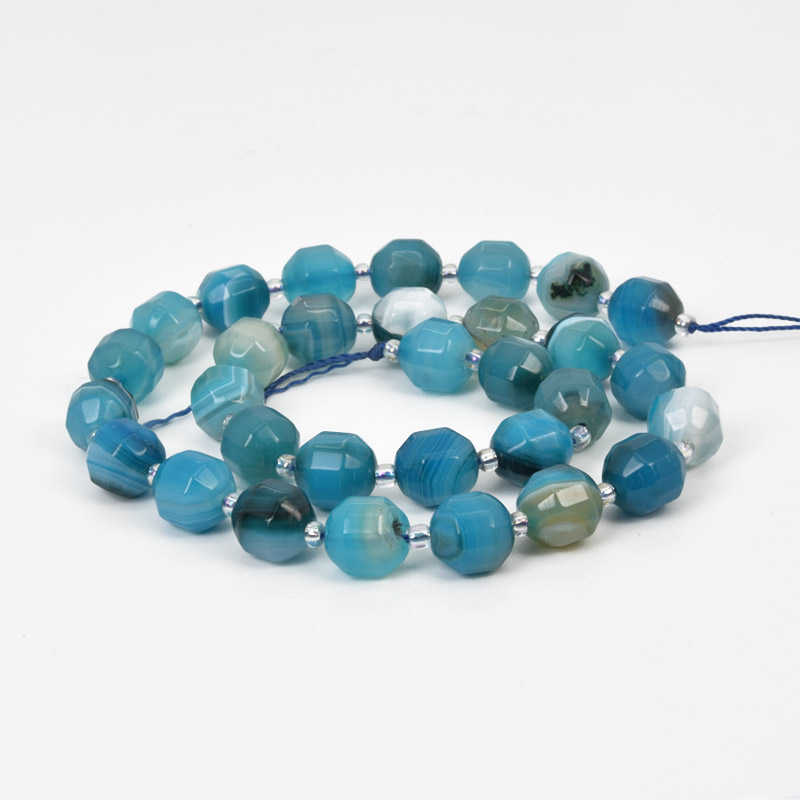 Намистини Агат синій, Натур. камінь, 10 мм, Круглі грановані (BUS-058212) / 1 низка
