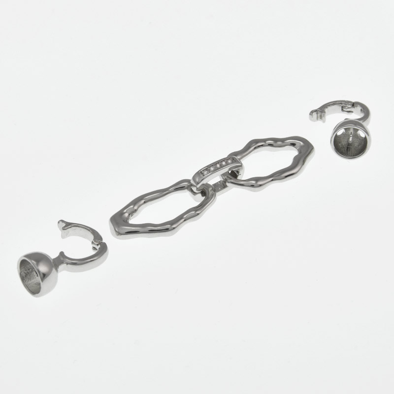 Застібка, 60х10 мм, Латунь з покриттям Родій, Куб. цирконій (ZAM-058484) / 1 шт