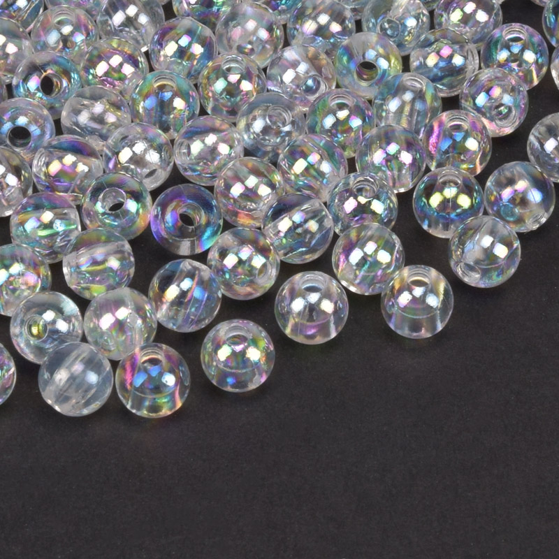 Намистини для сумок ОПТ, Акрилові, Прозорі райдужні, Круглі, 6 мм, Прозорі (BUS-059735) / 1 уп (450 г)