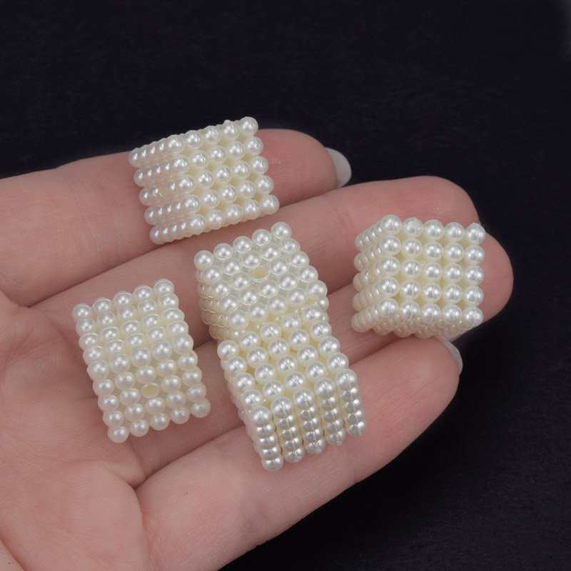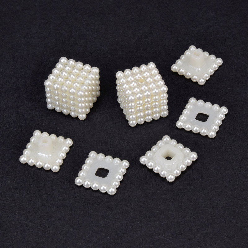 Намистини пластикові, Куб розбірний, Перли, 15х14х14 мм, Кремові (BUS-059828) / 1 уп (5 шт)