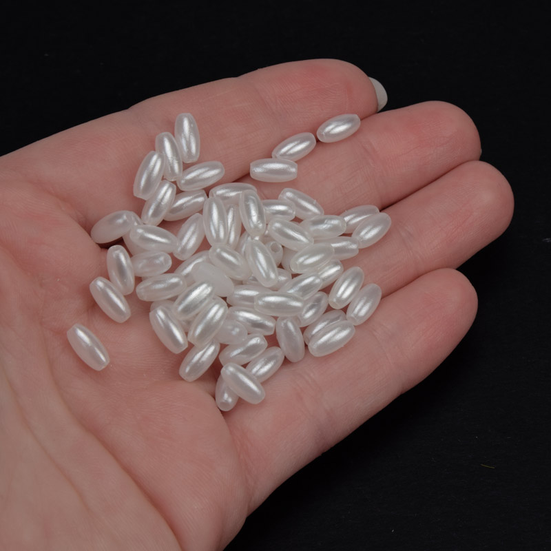 Намистини пластикові Рис Перли, 8х4 мм, Білі (BUS-059864) / 1 уп (5 г)