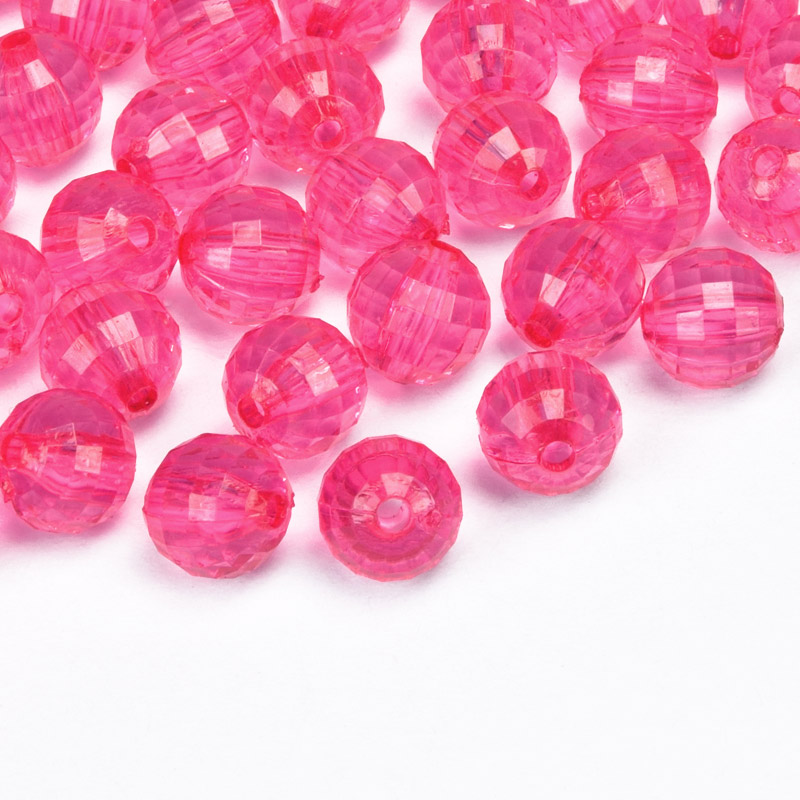 Намистини акрилові, Круглі грановані, 8 мм, Малинові (BUS-059873) / 1 уп (50 шт)