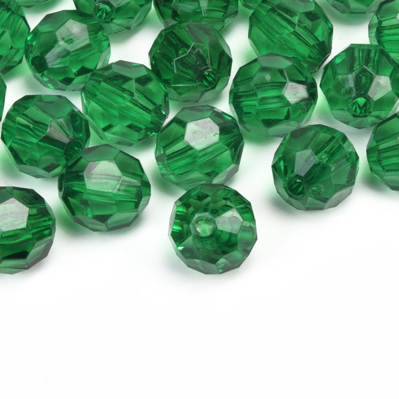 Намистини для сумок ОПТ, Акрилові, Круглі грановані, 10 мм, Зелені (BUS-059890) / 1 уп (450 г)