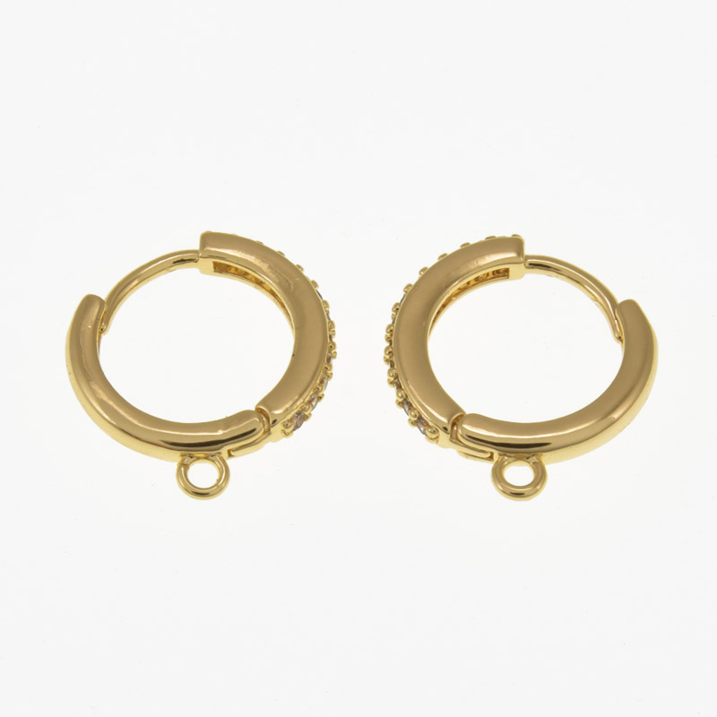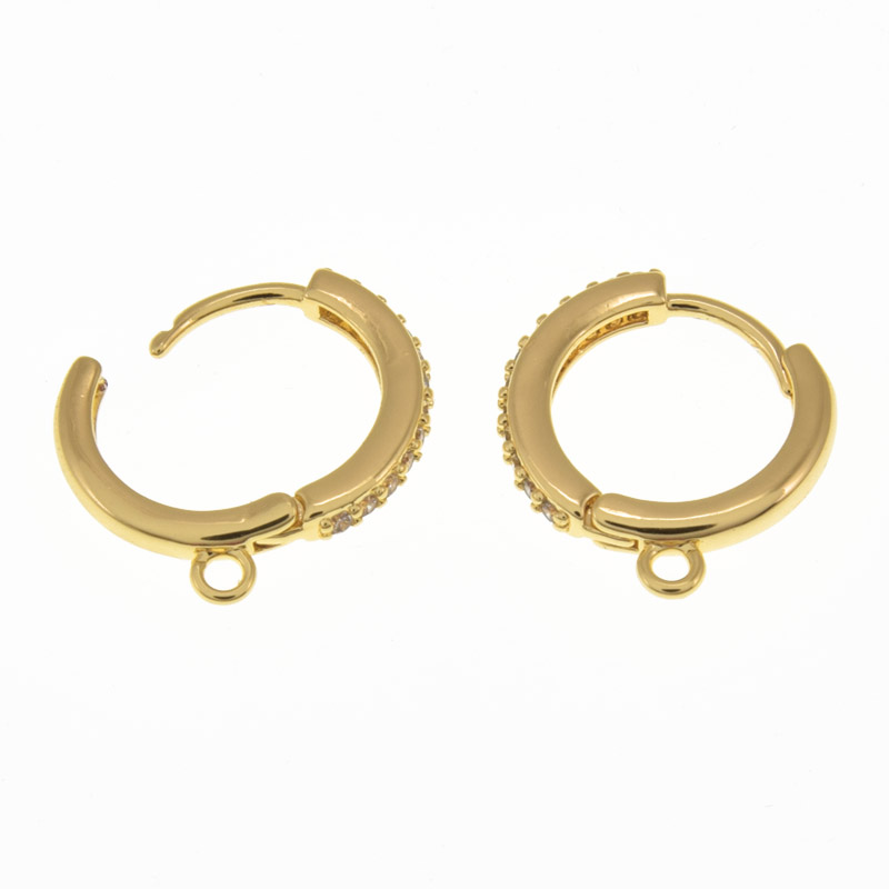 Швензи круглі, Латунь з покриттям 18 kt, Стрази куб. цирконій, 17х15х2 мм (OSN-059997) / 1 уп (2 шт)