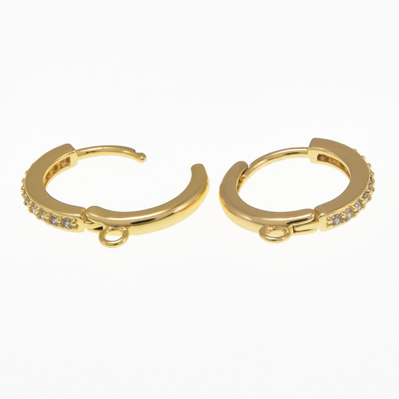 Швензи круглі, Латунь з покриттям 18 kt, Стрази куб. цирконій, 17х15х2 мм (OSN-059997) / 1 уп (2 шт)